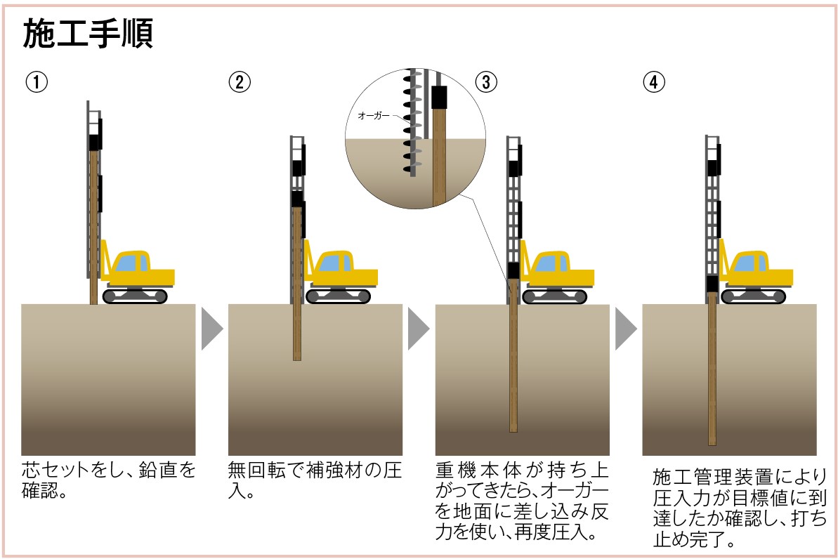 施工管理装置にて長期支持力の2倍以上の圧入力にて打ち止め管理